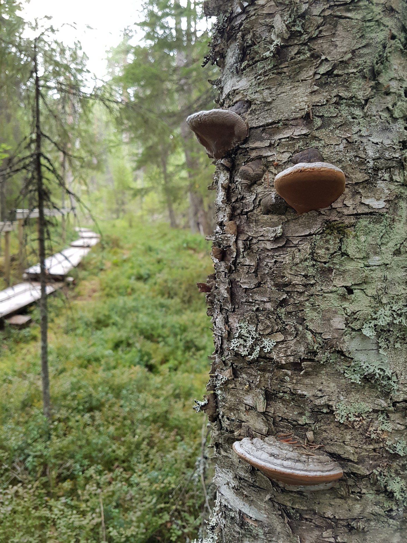 Löytyi vaikka mitä! Heti parkkipaikalta kivoja karttoja, mitä tutkia ja merkitty polku, mitä seurata. Pitkospuita, niitä suosikkeja! Ja niin, niin upeita puuvanhuksia! Osa jökötti pystyssä elämää ja maailmankaikkeutta uhmaten, komeina ja korkeina. Osa oli kellahtanut lepäämään jo pitkät ajat ja tovit sitten ja niiden olemassaolosta kertoivat hienot sammaloituneet ja uutta sukupolvea kasvattavat kumpareet.